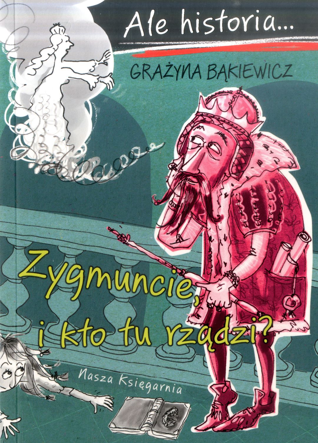 Cześć, jestem Jolka i uwielbiam czytać – strona po stronie, linijka po linijce. Jako jedyna w klasie mam w domu prawdziwe książki. I to aż trzy! Znalazłam je u babci na strychu. Wykorzystam każdą okazję, żeby zdobyć kolejne albo chociaż je obejrzeć. Podróże w przeszłość bardzo się do tego przydają… Grupa nastolatków przenosi się do szesnastowiecznej Polski. Mają sprawdzić, kto wtedy naprawdę rządził naszym krajem: Zygmunt Stary, królowa Bona, Zygmunt August, a może ktoś inny? Dziwne? Wcale nie! W niedalekiej przyszłości nauka historii wygląda zupełnie inaczej… Szczególnie gdy nauczycielem jest pan Cebula. Bogato ilustrowana seria "Ale historia…" z humorem przekazuje fakty historyczne i ciekawostki. Z czwartej części dowiecie się między innymi, do czego doprowadziła moda na magię, dlaczego piraci służyli polskiemu królowi i jak rozpoznać prawdziwego szlachcica! ilustrator: Artur Nowicki